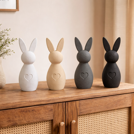 Herzhäschen Osterdeko – Flauschige Osterhasen mit Fuzzy Skin Oberfläche, samtweiche Frühlingsdeko, Hasenfigur als Tischdeko oder Ostergeschenk