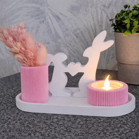 Oster Teelichthalter mit Hasen & Herz – Moderne Deko mit Kerze & Blumenhalter